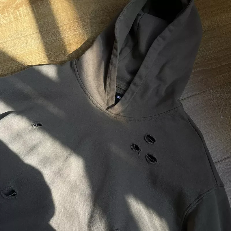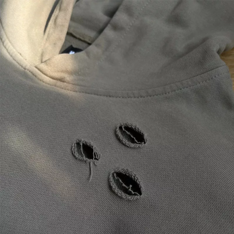 390GSM Distressed Hoodies Factory Custom Made Heavy Weight French Terry Cotton Pullover